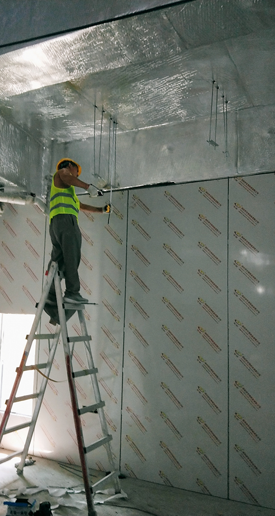 施工中安裝好的部分墻面