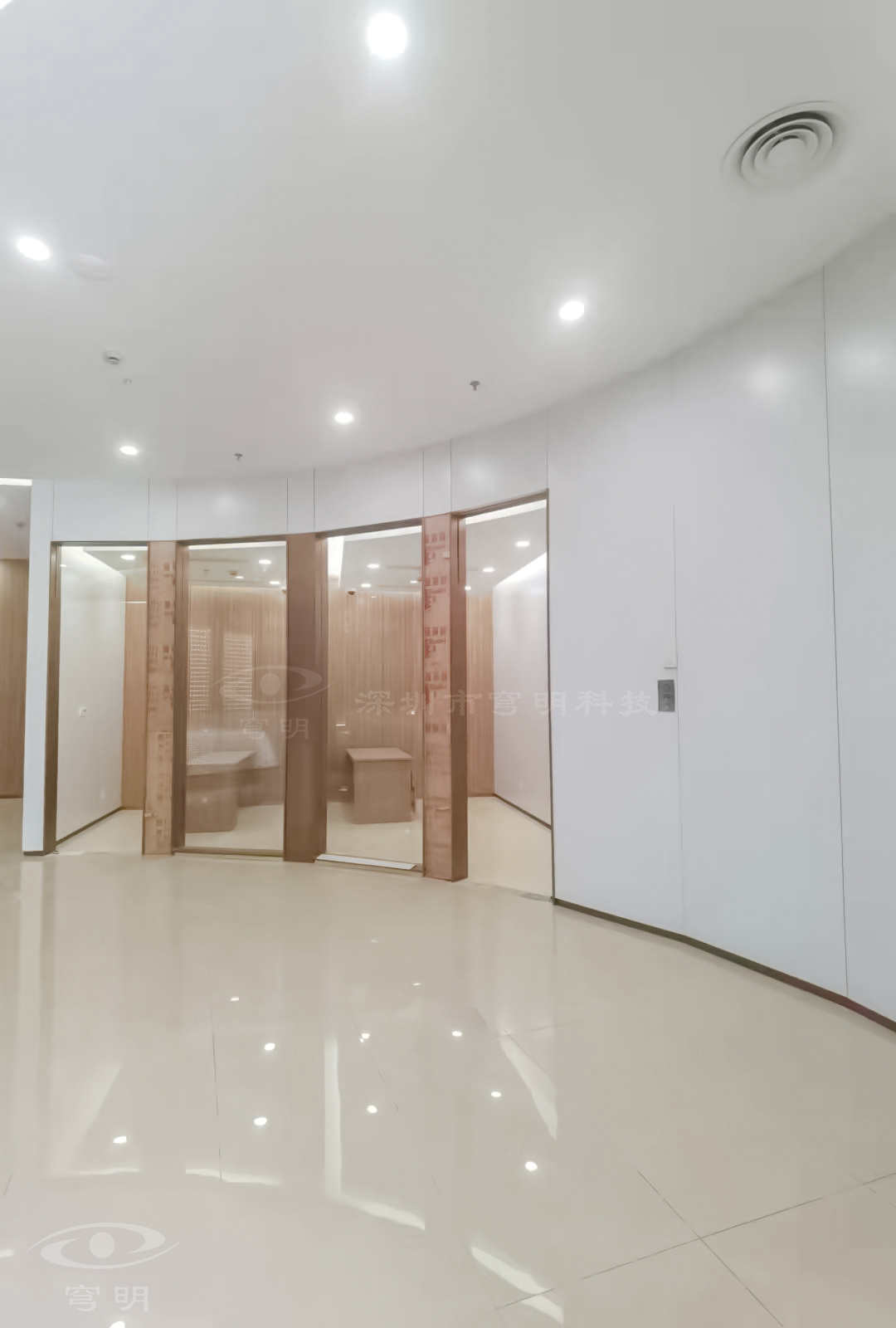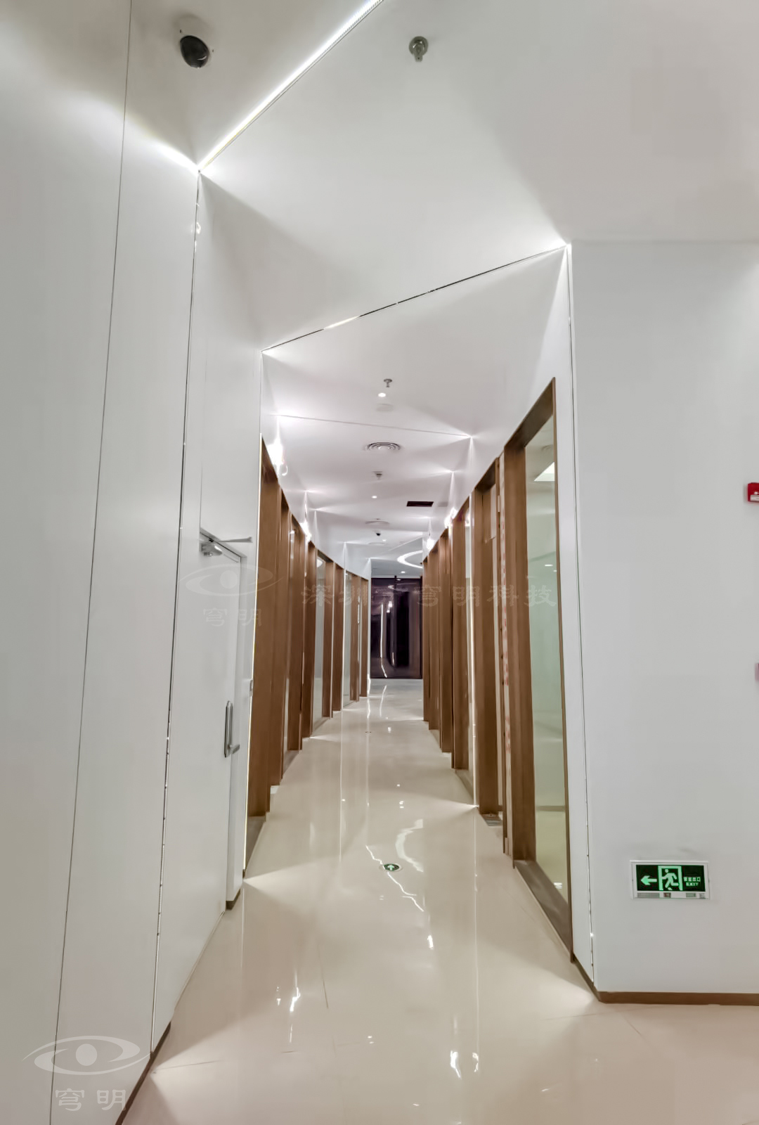 行政走廊以鏡面、陶瓷地板與sy849白色、紅豆杉木紋金屬復(fù)合板的碰撞融合,玻璃構(gòu)成空間的多維度,使觀者置身其中,產(chǎn)生時(shí)尚簡約的共鳴。