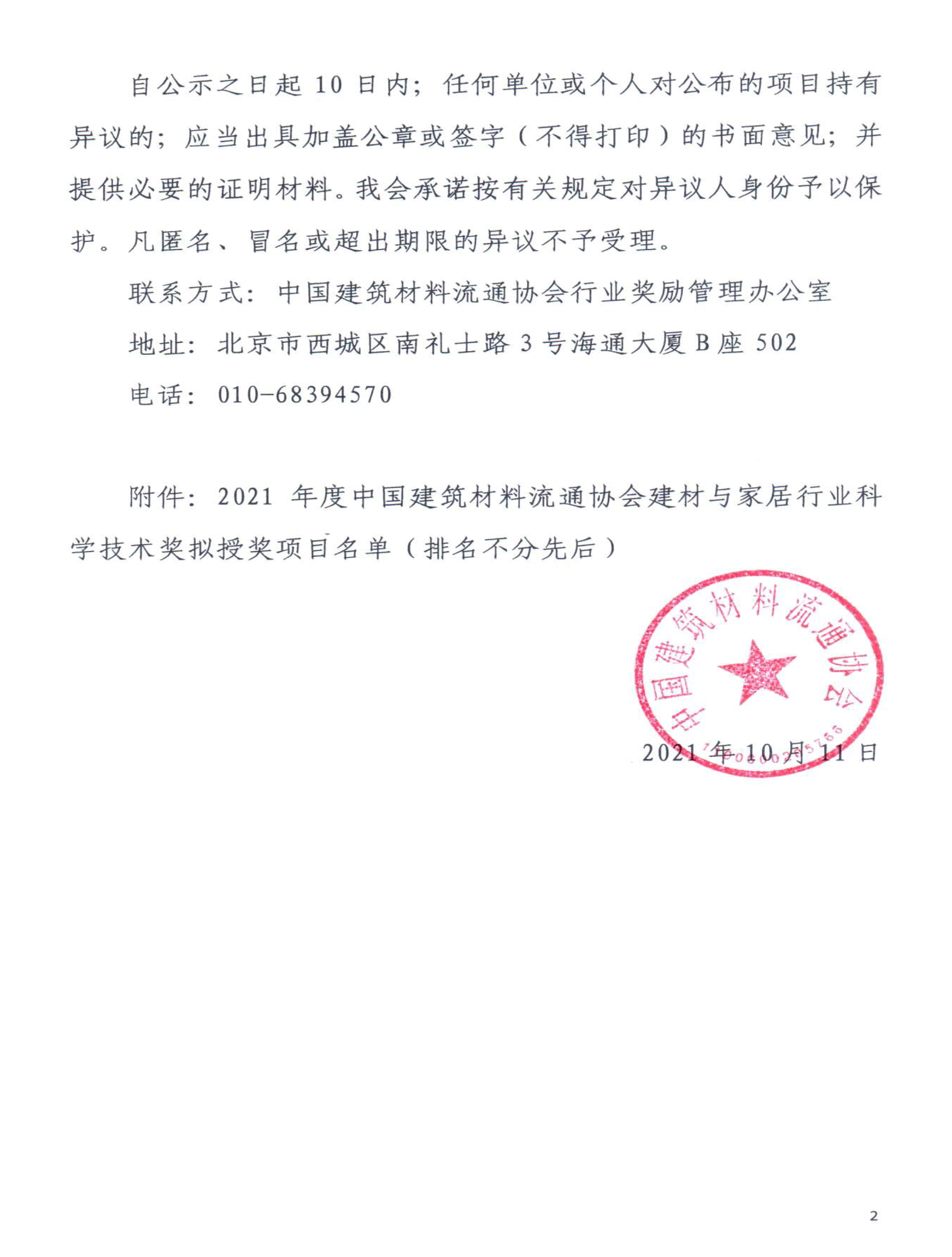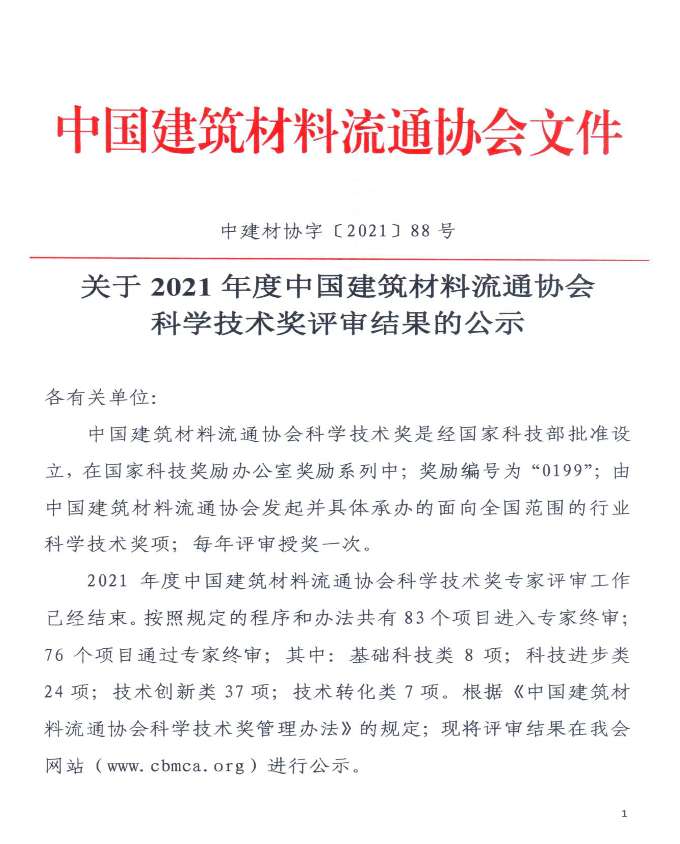 2021年度中國建筑材料流通協(xié)會(huì)科學(xué)技術(shù)獎(jiǎng)