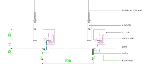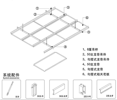 采用勾搭式安裝工藝,鋼制吊頂尺寸規(guī)格大,整體性效果美觀大方,表面紋理豐富,施工周期短;管道維修方便,